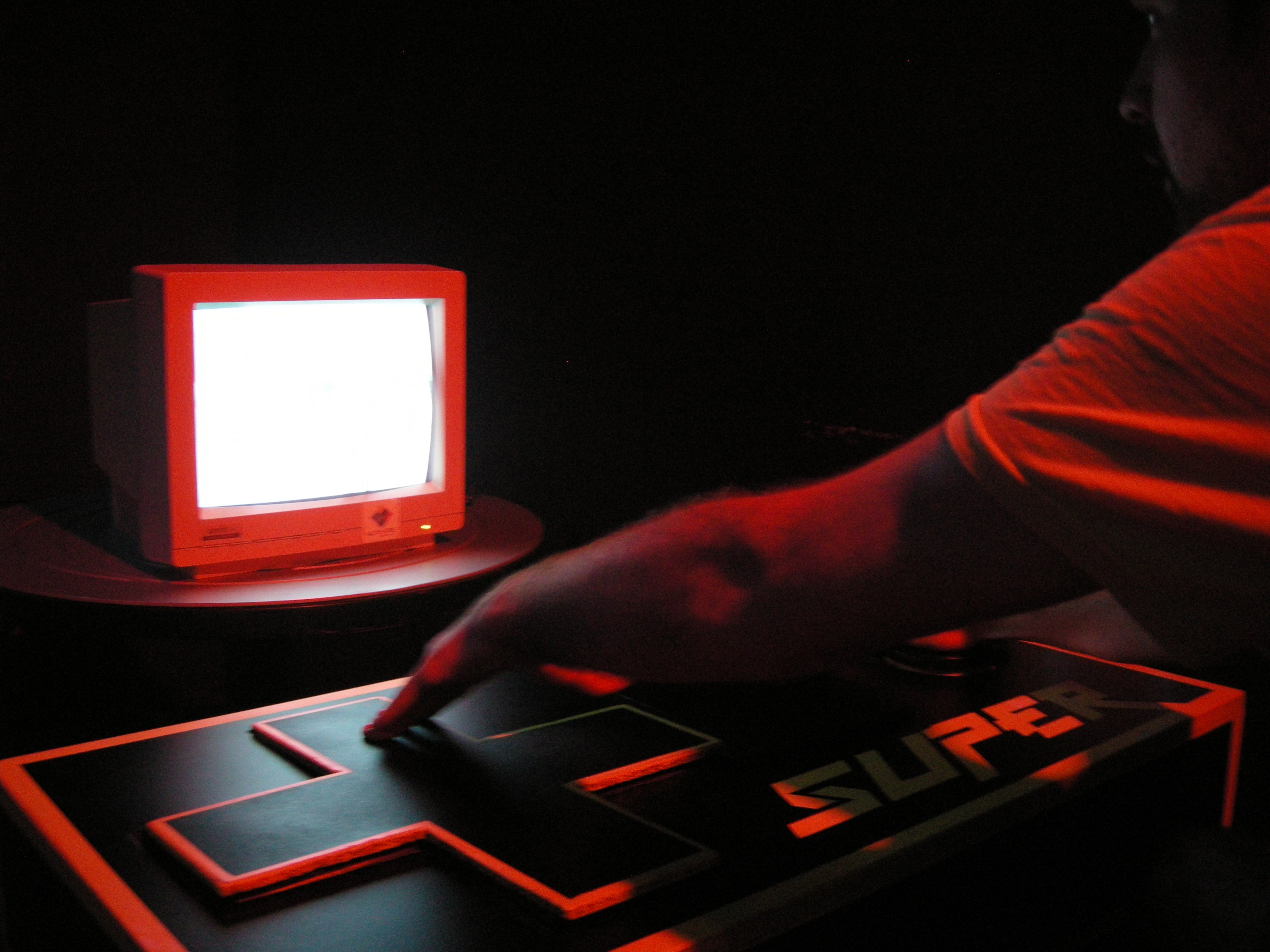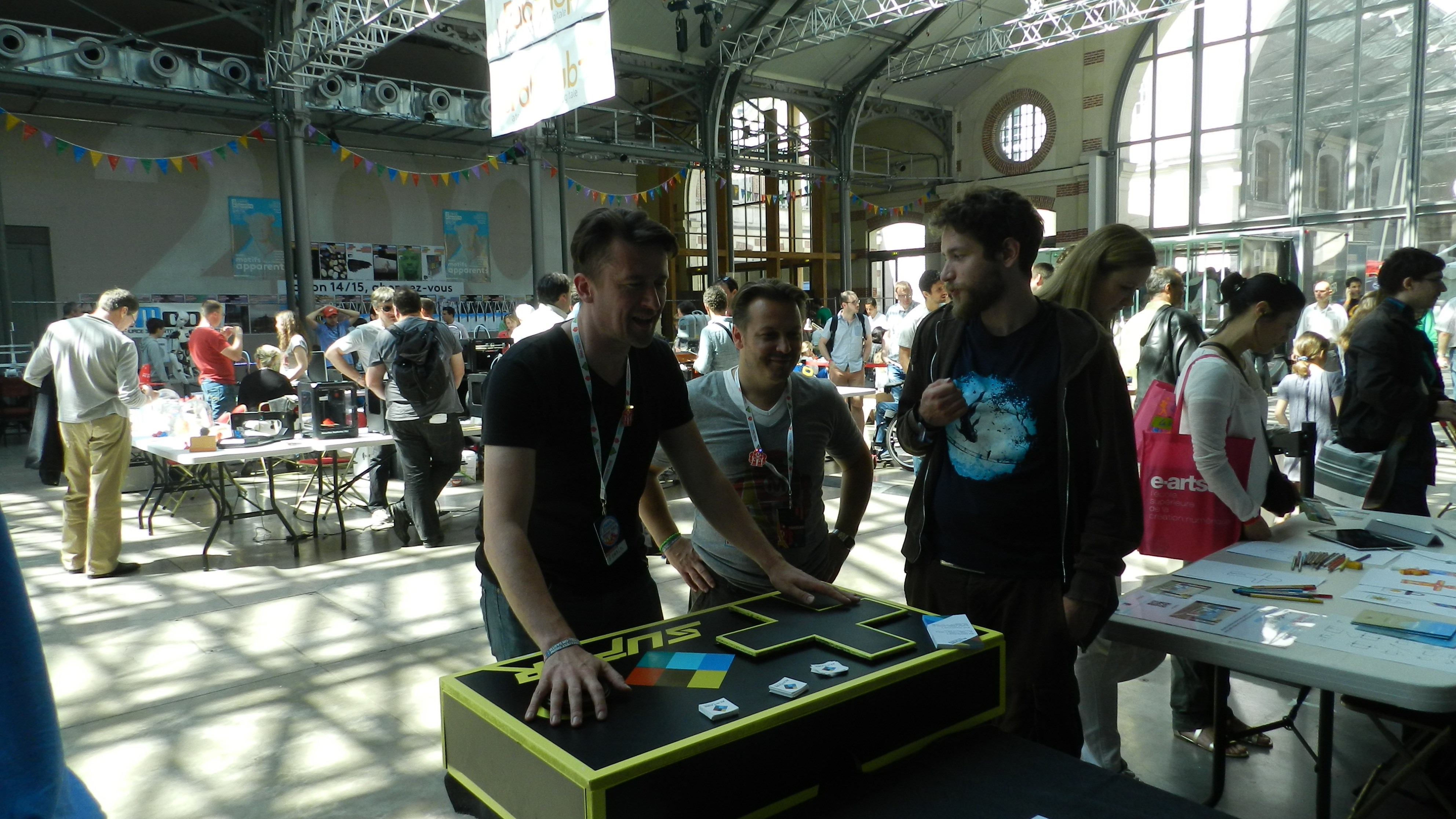 SUPER a été crée avec le collectif Alineaire. Je me suis surtout occupé de la partie développement et de la supervision du projet. J’ai également participé à la fabrication de la manette. Il a été crée en s’inspirant d’un mini ludum dare (n°50) sur le thème du Demake.